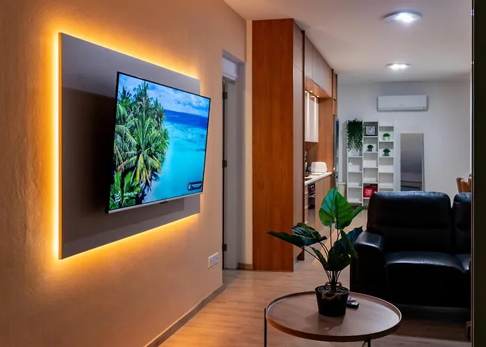 Wenn Sie einen frühen Flug aus Larnaka haben, liegt das 110 m^2 große Earth Apartment 10 km vom Flughafen Larnaka entfernt. Das 1-Zimmer-Apartment verfügt über eine Terrasse mit Blick auf die Stadt.
